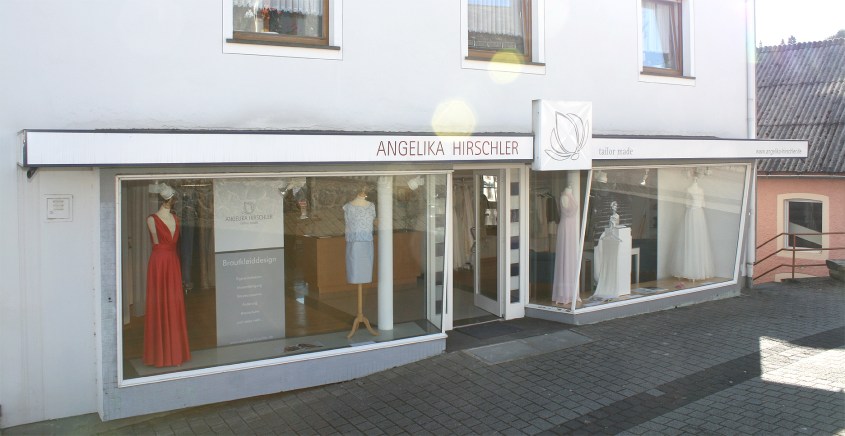 Angelika Hirschler, die in ihrer Familie „weit und breit die Einzige ist, die sich selbstständig gemacht hat“, entschied sich. Gegen ein Atelier in Berlin oder Hamburg. Und für einen leer stehenden Ausstellungsraum der Schalkenmehrener Schreinerei Münch. Statt meisterlich geschreinerter Möbel, meisterlich geschneiderte Abend-, Cocktail- oder Hochzeitsmode: „Angelika Hirschler – Tailor Made“ steht an der Fassade.