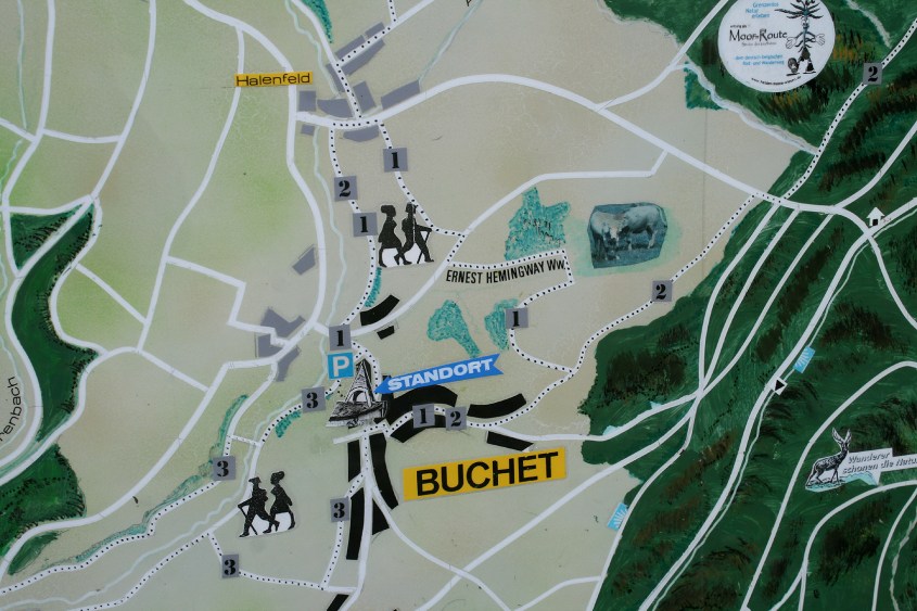 Wer nach Ernest Hemingway in Buchet in der Schneifel sucht, findet: fast nichts. Im September 1944 war der Schriftsteller – „Der alte Mann und das Meer“, „Fiesta“, „Schnee am Kilimandscharo“ – mit den US-amerikanischen Truppen am „D-Day“, dem 6. Juni 1944, an der Küste der Normandie angelandet. Sein Auftrag: Kriegsberichterstattung unter anderem für die Magazine „Collier’s“, „Life“ oder auch den „Toronto Star“. Er begleitete den Vormarsch der 4. US-Armee Richtung deutsch-belgischer Grenze, und bezog vermutlich Anfang September in Buchet die Räume der zuvor beschlagnahmten damaligen Dorfwirtschaft. In die Schneifel, danach in die luxemburgische Schweiz und nach Luxemburg sollte er – mit Zwischenaufenthalten in Paris – bis Ende 1944 immer wieder zurückkehren.