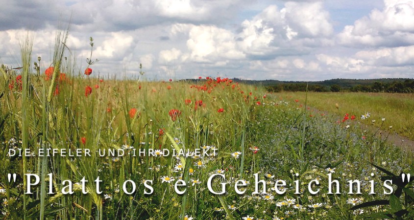 Was für ein sprachliches Kuddelmuddel das Eifeler Platt ist, das je nach Region mal mehr, mal weniger aus dem Moselfränkischen oder dem Ripuarischen des Rheinlandes gebildet ist, davon zeugt die „Eifeler Sprachbarriere“. Sie trennt die beiden wichtigsten Sprachfamilien der Region mit einem breiten „Korridor“ in dem Platt-mäßig alles möglich ist. Es gibt, nebenbei bemerkt, sogar eine von Sprachwissenschaftlern so genannte „Eifeler Regel“: Bei bestimmten Wörtern in bestimmter Wortumgebung wird das endständige „–n“ weggelassen: Damenschuhe werden Dammeschong. Die Liste ließe sich verlängern. Aber wer schreibt schon im Dialekt? Es gilt das gesprochene Wort.