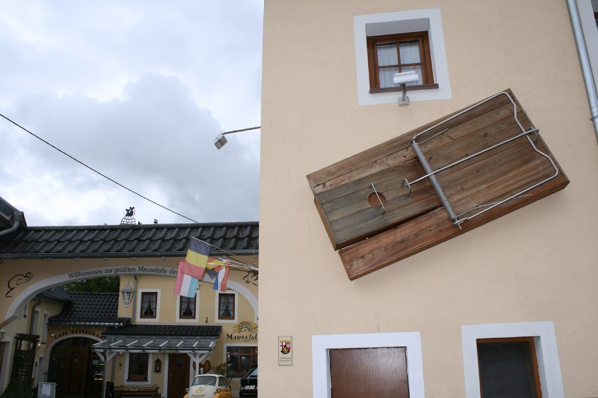 Helga Wallenborn, die Vorsitzende des 1983 gegründeten Nerother Heimatvereins, kennt die Geschichten rund um die Nerother Mausefallen gut. Sie sind zu Neroths „Wahrzeichen“ geworden, ein Hingucker ist eine riesige Schlagfalle an der Fassade vor dem „Café Mausefalle“ von Dietmar und Christiane Weides an der Hauptstraße.