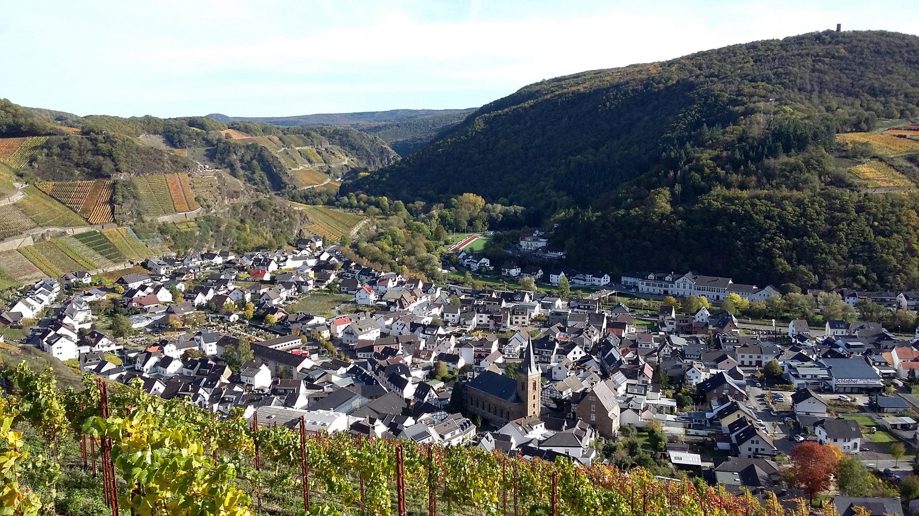 Blick auf den einstigen Flucht- und Pulverturm der Lauffenburg in Münstermaifeld.