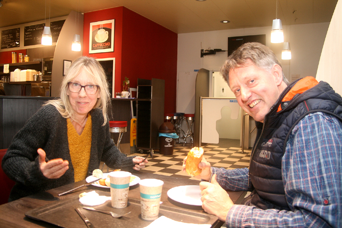 Christine kommt aus Südfrankreich. Ein paar Schokoriegel und weiter zurück auf die nahe Autobahn in Richtung Niederrhein.