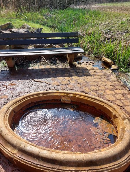 Der Vulkanismus begleitet die Wanderer nach dem Durchstieg durch die steilen Trasswände der „Wolfsschlucht“ auch weiter: Wenig später wird mit der „Römerquelle“, weiter oberhalb im Wasssenachtal eine zweite Quelle in einem eingefassten Becken erreicht. Gelb-rote Ablagerungen weisen auf schwefelhaltiges Wasser hin – und aufsteigende CO2-Bläschen auf Kohlensäure im Wasser, sichtbares Zeichen von Vulkanismus tief darunter im Erdinnern.