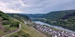 Oberhalb von Echternacherbrück, kurz vor einem kurzen Anstieg zur Kuckuckslay, hat man dann einen ersten Blick nach Luxemburg, hier auf die Heilig-Kreuz-Kapelle am Stadtrand von Echternach in mittlerer Entfernung im Tal.