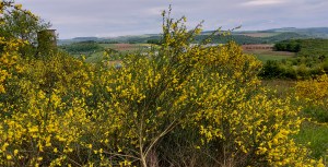 Eifelspur "So weit das Auge reicht": Blick Nordosten vom "Galgennück" mit Vussem im Vordergrund und Bergen des Siebengebirges hinten rechts.