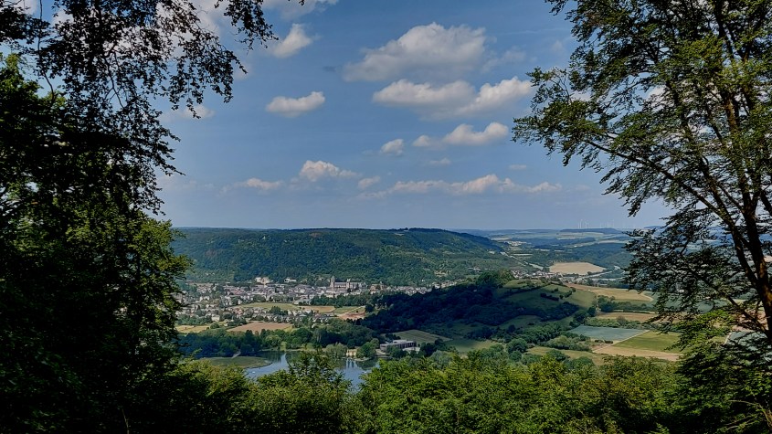 Nach Born und nach Moersdorf führen weitere Abstecher vom eigentliche Trail, die diese Route so besonders abwechslungsreich machen. Da wäre etwa die Luxemburgisch- Deutsche Brücke über die Sauer zwischen Moersdorf und Metzdorf. In den ersten Monaten nach Ausbruch der Corona-Pandemie war sie gesperrt – das erste Mal nach der Eröffnung 2018. „Europa-Steine“ und eine EU-Fahne auf der Brücke und am Geländer waren am Ende als Hoffnung stärker: Die Fußgänger- und Radfahrerbrücke ist wieder geöffnet.