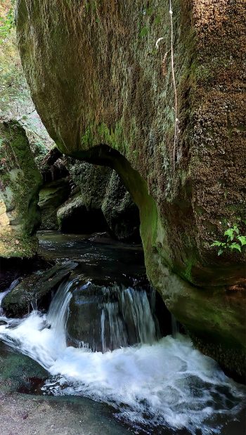 Und wieder zeigt sich die „Kleine Luxemburger Schweiz“ von einer ganz anderen Seite. Die erste Runde des Mullerthal Trails kann man unter dem Label „Die Unentschlossene“ zusammenfassen: mit ersten Partien an Sandsteinfelsen entlang, dem Passieren von kleinen bemerkenswerten Orten am Sauerufer, leider aber auch eher uninspirierten Kilometer langen Waldwirtschaftswegen. Runde 2 ist zweifellos „Die Dramatische“ mit abenteuerlichen Pfaden an, unter, durch und auf die rund 170 Millionen Jahre alten Sandsteinfelsen zwischen Berdorf, Müllerthal und Consdorf. Viel beschrieben und fotografiert.