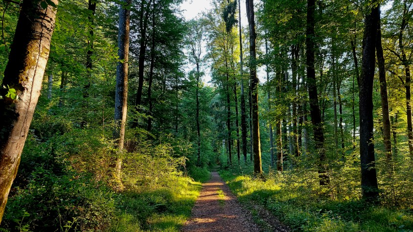 Früh am Morgen, die Sonne blinzelt gerade über die Höhen, liegt noch ein Zauber über den weiten Weiden entlang des Tals der Schwarzen Ernz. Es geht in dieser friedlichen Stille parallel des Baches bis zu einer Gabelung, und jetzt langsam und stetig für eine gute Stunde durch den Langebësch hinauf. Hier kommt erst der Halerbaach, später der Haupeschbaach entgegen. Große Teile des Gebietes gehöre zum Naturschutzgebiet Befort, das unterhalb der Burgruine von Beaufort enden wird.