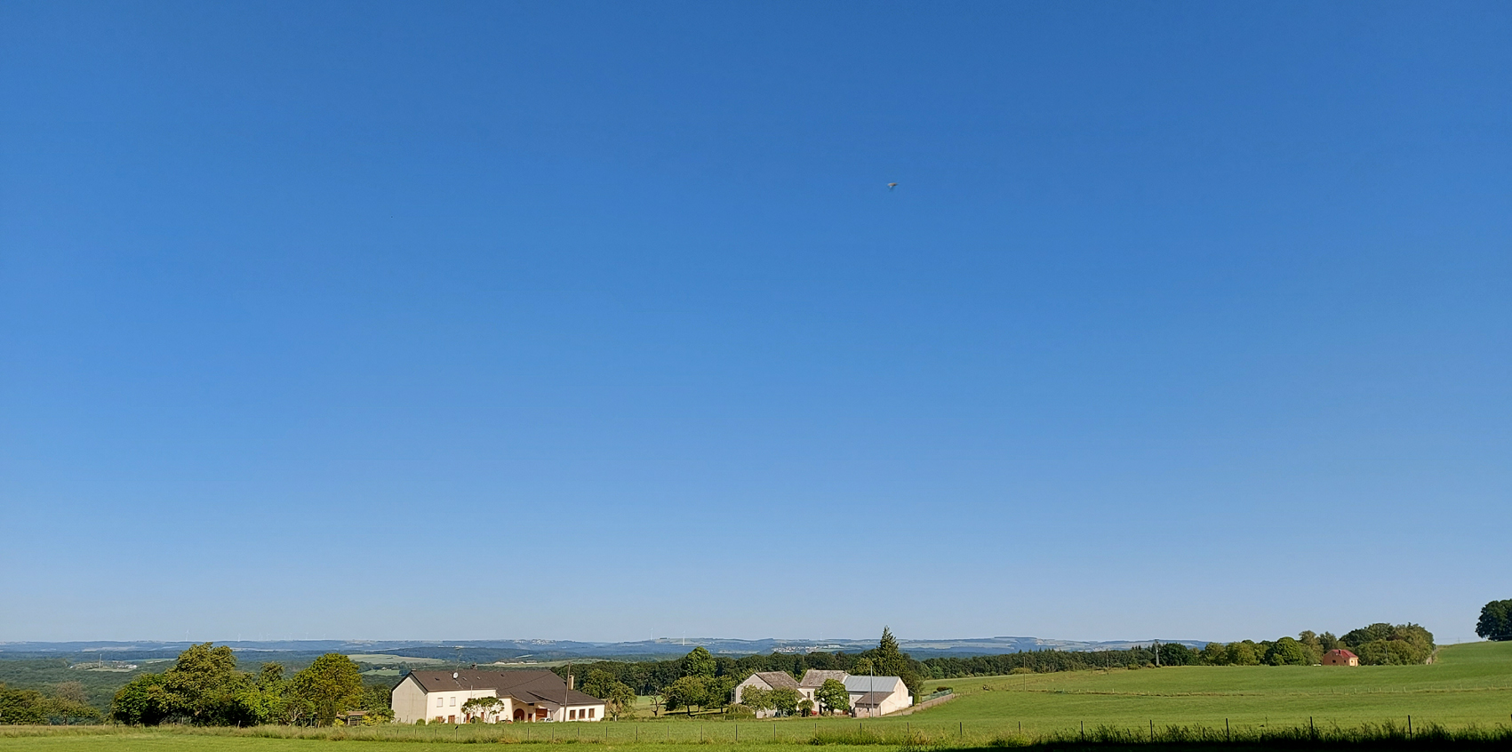 Eifelspur „So weit das Auge reicht“: Blick Nordosten vom „Galgennück“ mit Vussem im Vordergrund und Bergen des Siebengebirges hinten rechts.