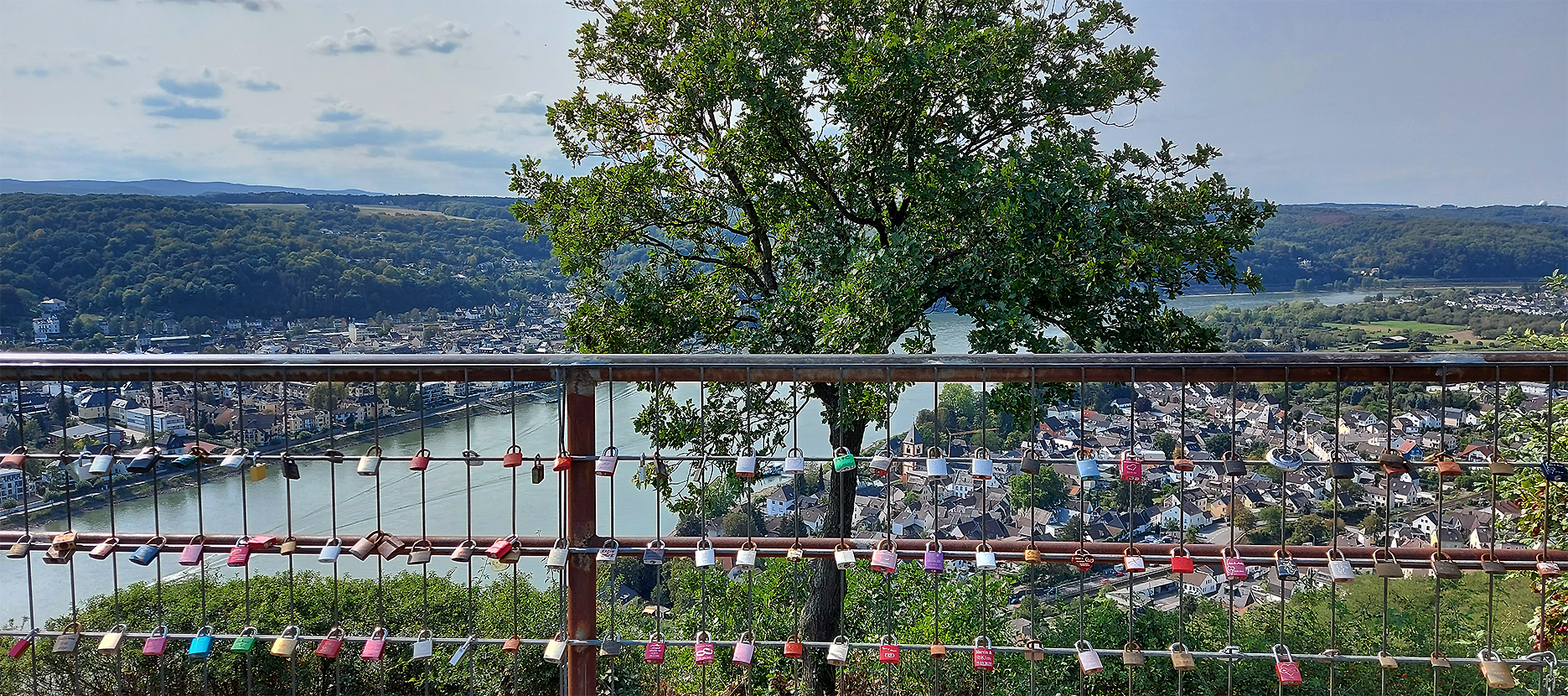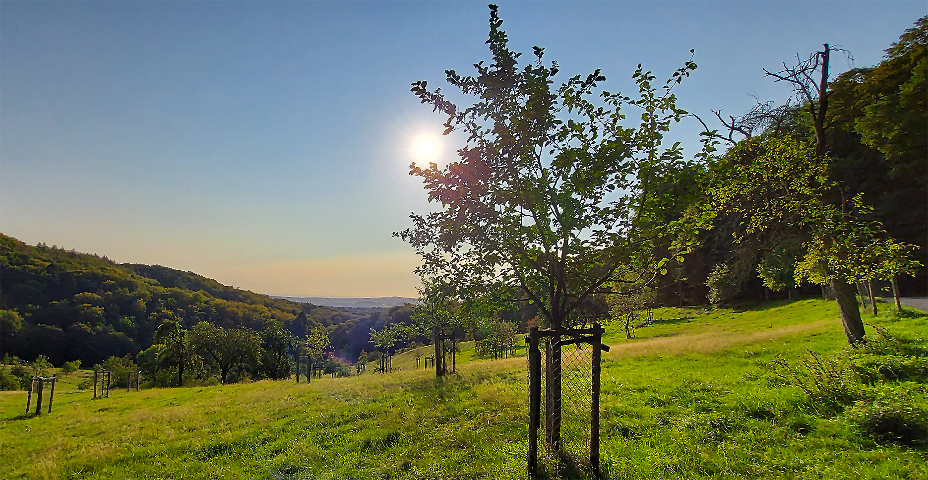 Weiter führt der Weg von der Erpeler Lay immer mal wieder an Streuobstwiesen vorbei, die ein Markenzeichen der Wiesen auf den Höhen des Rheintals bis zum Beginn des Oberen Mittelrheins bei Braubach sind.