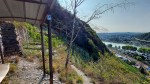 Solche Zusatzmeter lohnen sich auch beim Abstecher zur Ruine der Löwenburg auf 455 Metern über NN. Ein unscheinbarer Granitfelsen neben einer alten Eiche am Aussichtspunkt ist ein „Trigonometrischer Punkt erster Ordnung“, der unter anderem die Hohe Acht, den Michelsberg, oder Montabaur anpeilt. Hohe Acht und die Vulkankuppen der Osteifel sind gut zu sehen.