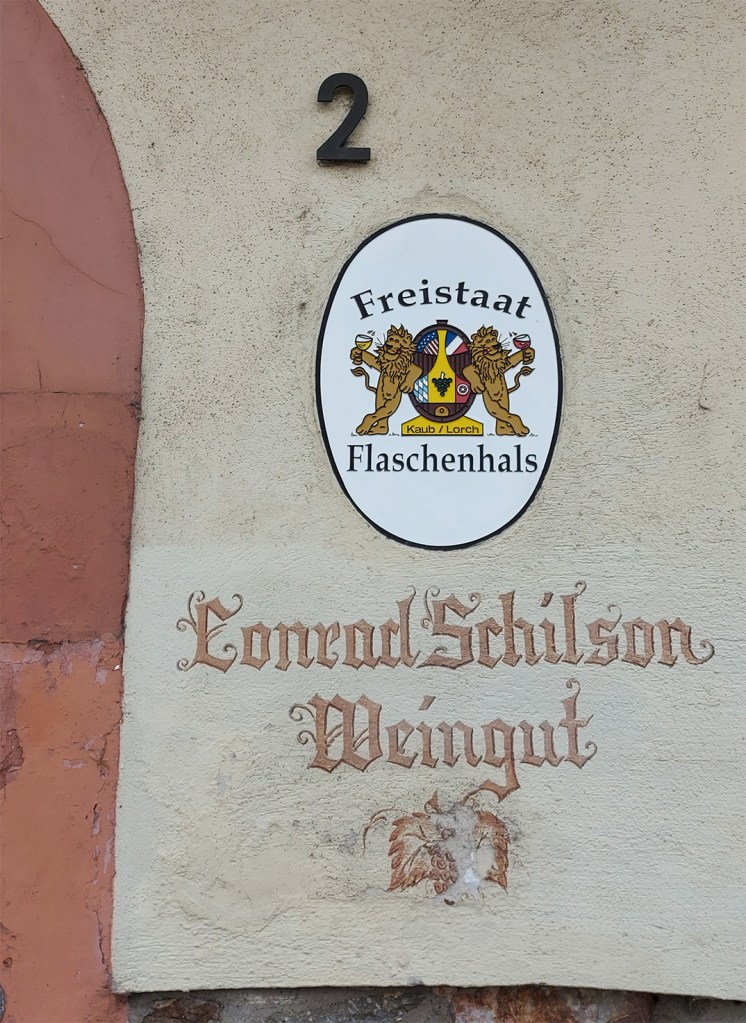 Wenig später betritt man – erkennbar an einem rot-weiß markierten Grenzpfahl am Wegesrand – ein Kuriosum: Der „Freistaat Flaschenhals“ war für kurze Zeit nach dem 1. Weltkrieg, genauer zwischen dem 10. Januar 1919 und dem 25. Februar 1923, exterritoriales Gebiet. Zwischen Kaub, dem Ort Sauerthal und Lorch hatten die Alliierten eine Grenzziehung ihrer Herrschaftsbereiche zwischen Mainz und Koblenz schlicht übersehen.