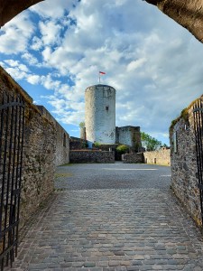 Blick auf den einstigen Flucht- und Pulverturm der Lauffenburg in Münstermaifeld.