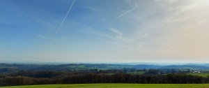 Eifelspur „So weit das Auge reicht“: Blick Nordosten vom „Galgennück“ mit Vussem im Vordergrund und Bergen des Siebengebirges hinten rechts.