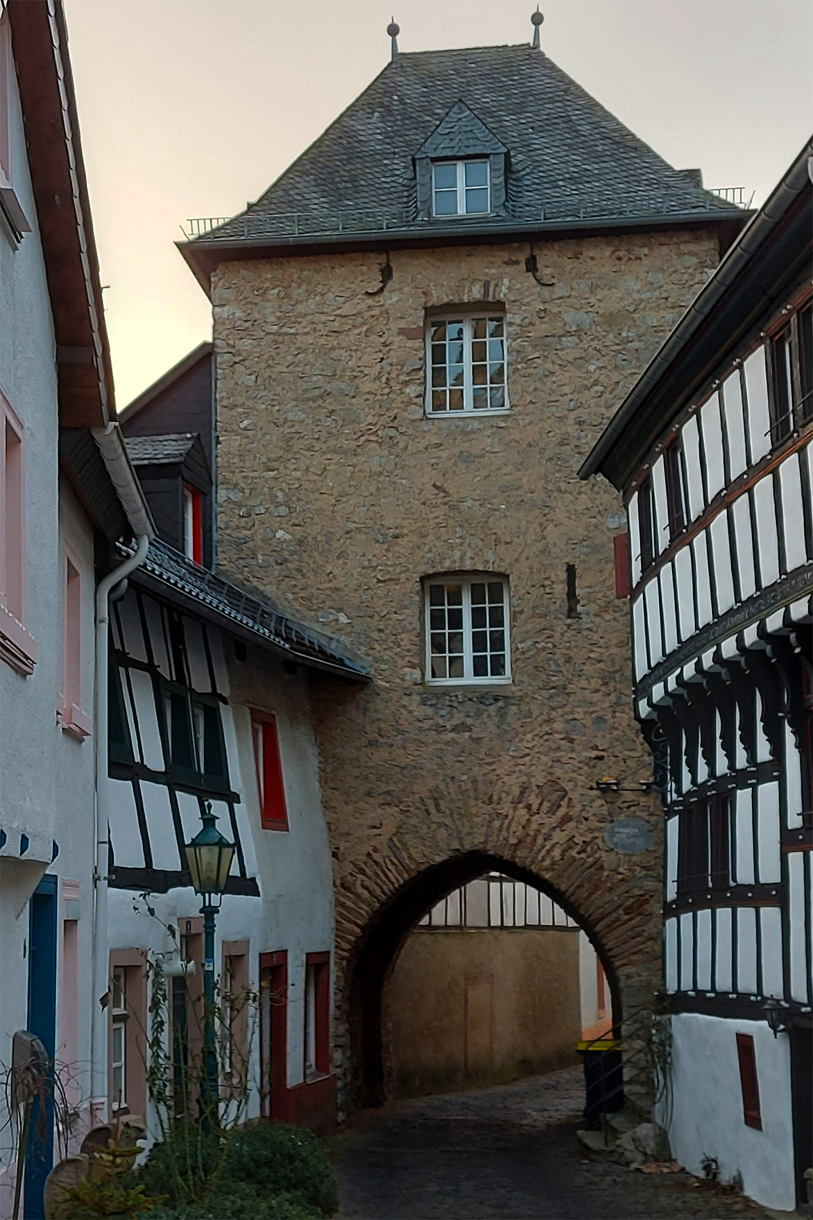 Blick auf den einstigen Flucht- und Pulverturm der Lauffenburg in Münstermaifeld.