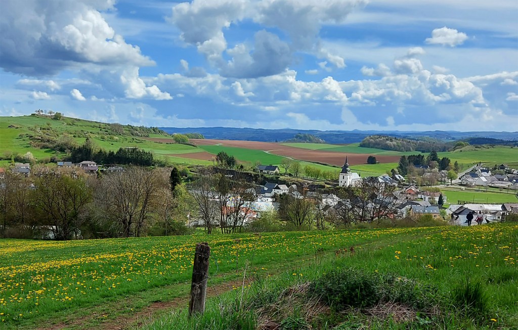 Doch es kommt noch besser. Etwas später, vom Aussichtspunkt an der Kapelle Wahlhausen oberhalb von Steffeln, gibt es einen 360-Grad-Rundumblick in die Vulkaneifel und angrenzende Regionen. Das kleine Gotteshaus wurde von der Steffelner Bevölkerung aus Dankbarkeit, dass ihr Ort im Zweiten Weltkrieg verschont wurde errichtet.
