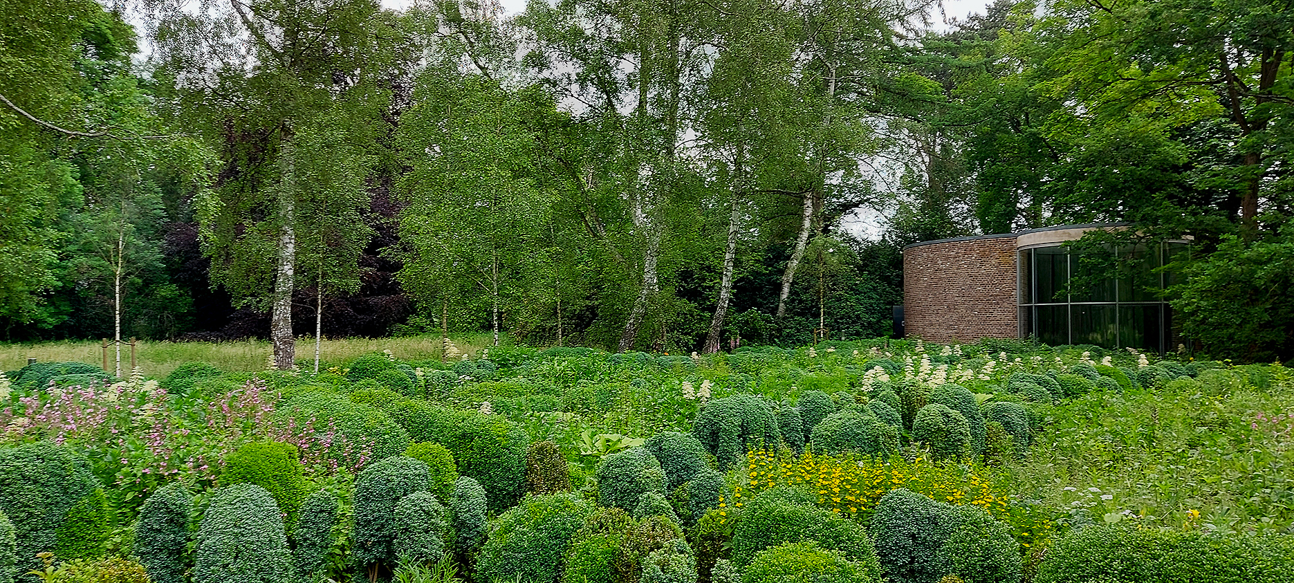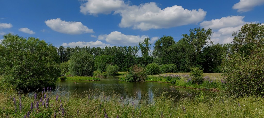 Daneben kommt es zu reinen Naturerlebnissen. Zwischen Tümpeln und Feuchtwiesen führen Pfade vorbei an Flecken voll blühenden Fingerhuts, Holunder und Wiesenmargeriten, umgeben vom lautstarken Quaken der Auenfrösche, schwebenden blauen Libellen, dem funkelnden Juwel-Blau eines auffliegenden Eisvogels oder einem regungslos bei der Beutejagd verharrenden großen Fischreiher. Immer wieder entdeckt man so auf kleinen Rundwegen die rauen Backsteinmauern der Kunstpavillons.