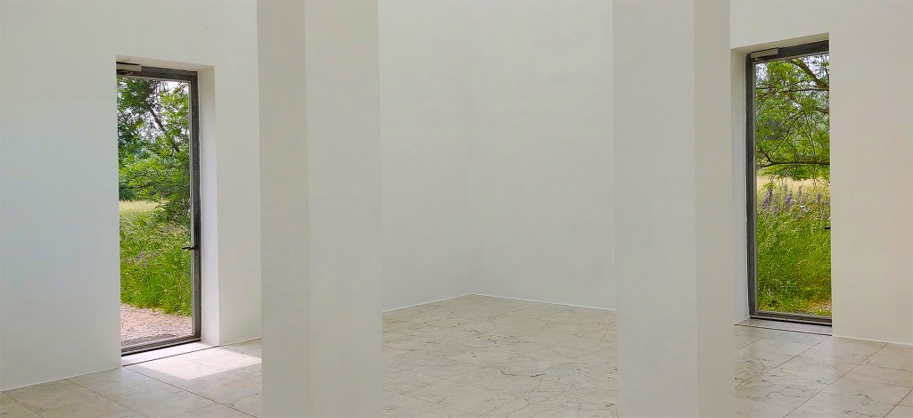1982 kaufte Müller das Gelände und stellte auch gleich die Bauanträge für die ersten beiden von heute zehn Pavillons. Hier sind wichtige Teile der mit Künstlerfreund Graubner als Berater aufgebauten Kunstsammlung zu sehen, oder es handelt sich um begehbare Skulpturen. Die Pavillons, konsequent auf Grundformen reduzierte White Cubes aus Ziegelmauerwerk, entwarf Erwin Heerich.