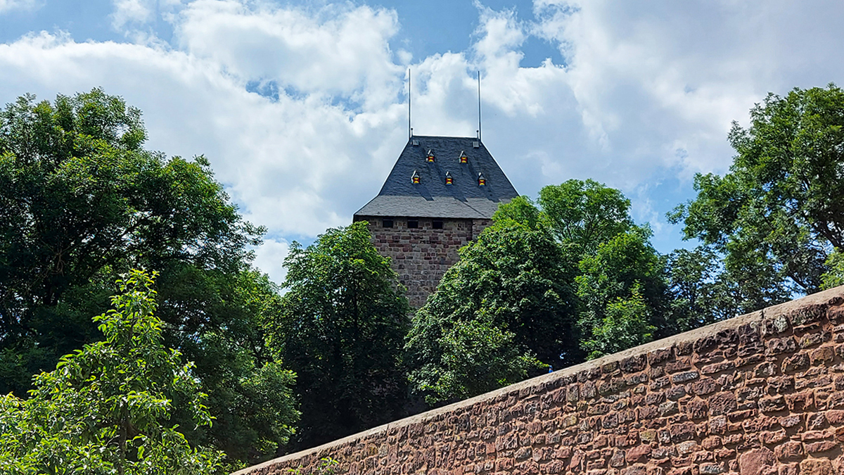 Blick auf den einstigen Flucht- und Pulverturm der Lauffenburg in Münstermaifeld.