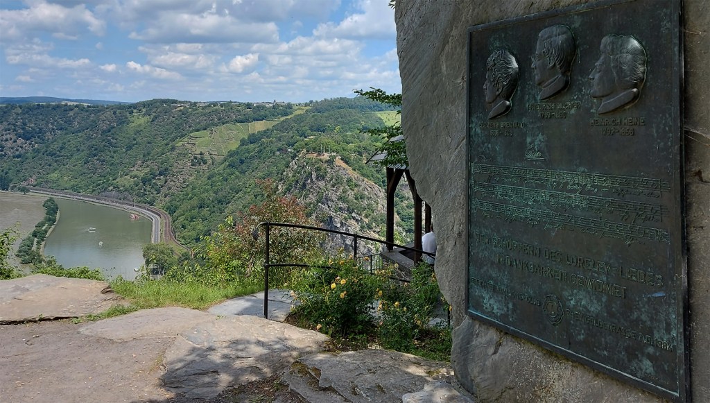 An der Aussichtsstelle „Maria Ruh“ kann man dann in „Loreley-Romantik“ schwelgen. Eine bronzene Gedenkplatte erinnert an die Protagonisten: Den Dichter Clemens Brentano, der die Loreley-Sage erfand, Heinrich Heine, der das bekannte Gedicht schrieb und an Heinrich Silcher, der es 1837 vertonte.