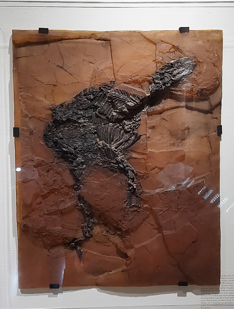 Das fast vollständig erhaltene Skelett einer etwa 45 Millionen Jahre alten trächtigen Stute ist nur eines von zahlreichen Funden aus dem naheliegenden Eckfelder Maar. Im „Eckfeld-Kabinett“ ist neben Krokodil-Kiefern und verschiedenen Insekten auch die älteste Honigbiene der Welt zu bestaunen