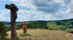 Es geht vom Wanderparkplatz vor dem Ortseingang von Boos erst hoch zur pechschwarzen „Lavabombe“ an der senkrechten Vulkansteinwand des Schneebergs. Dann die Holztreppen hinauf auf den „Booser Eifelturm“ mit Rundblick zum Nürburgring, der Nürburg und bis ins Rheintal.