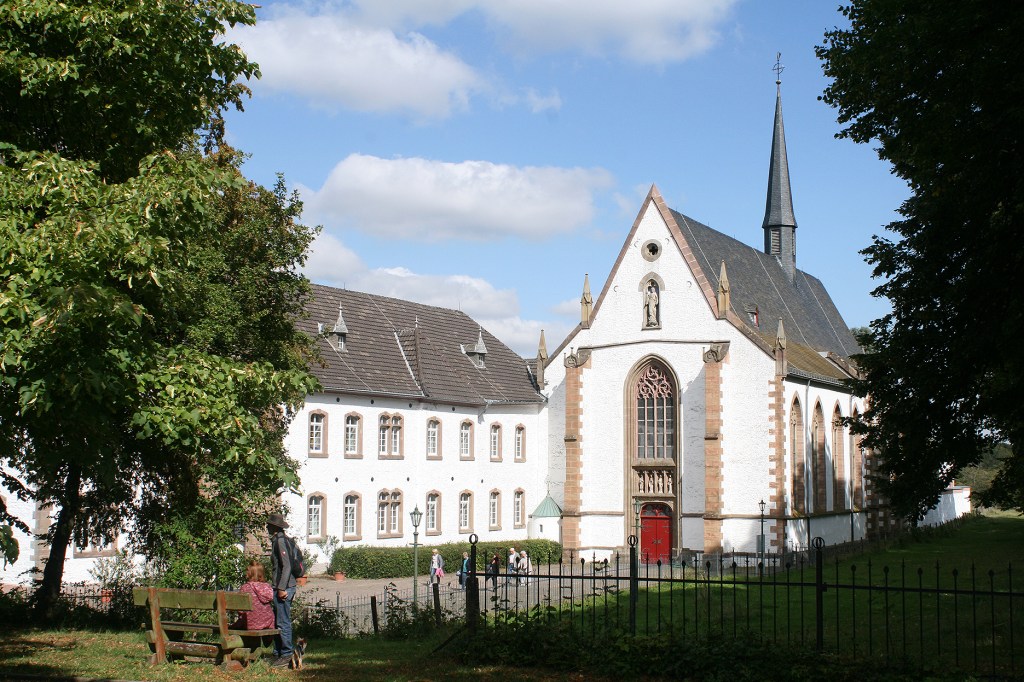 Weiter durch beindruckende Buchenwälder, das Schluchttal des Heimbachs wird passiert, dann sticht am Ende eines sanft ansteigenden Wiesenpfads der Wetterhahn auf der Turmspitze der spätgotischen Klosterkirche von Maria Wald zwischen den Baumwipfeln hervor.