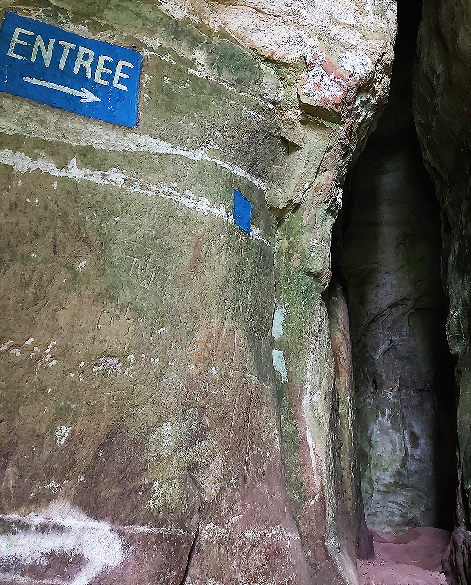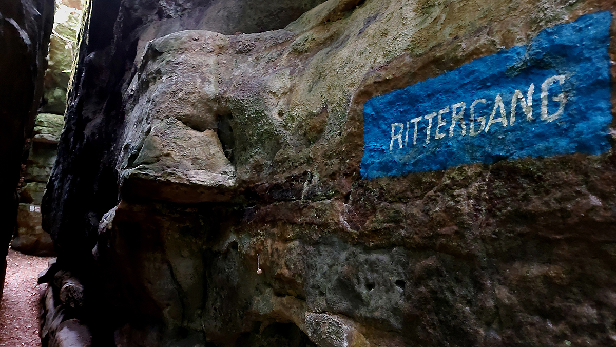 Abstecher ins Wanderparadies der Kleinen Luxemburgischen Schweiz (v. links im Uhrzeigersinn): Schiessentümpel, Eingang zur Kohlscheuer, Rittergang, La Rochette, Haalerbach.