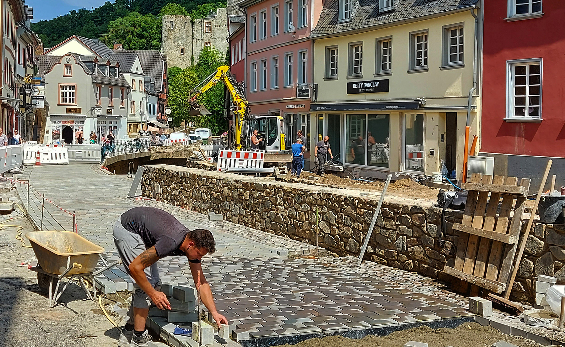 Gedenken, danken, feiern: Die Eifel 1 Jahr nach der Flut. Zum Jahrestag des verheerenden Hochwassers 2021 gab es entlang von Ahr, Erft und Eifelflüssen wie Urft, Prüm oder Nims zahlreiche Gedenkveranstaltungen. Sie waren mal bunt und laut, mal eher nachdenklich und leise. Immer standen die Trauer über die Toten, das Erschrecken über die entstandenen Schäden und der Dank an die vielen Helfer und Helferinnen im Mittelpunkt. Eindrücke von einigen Gedenkfeiern.