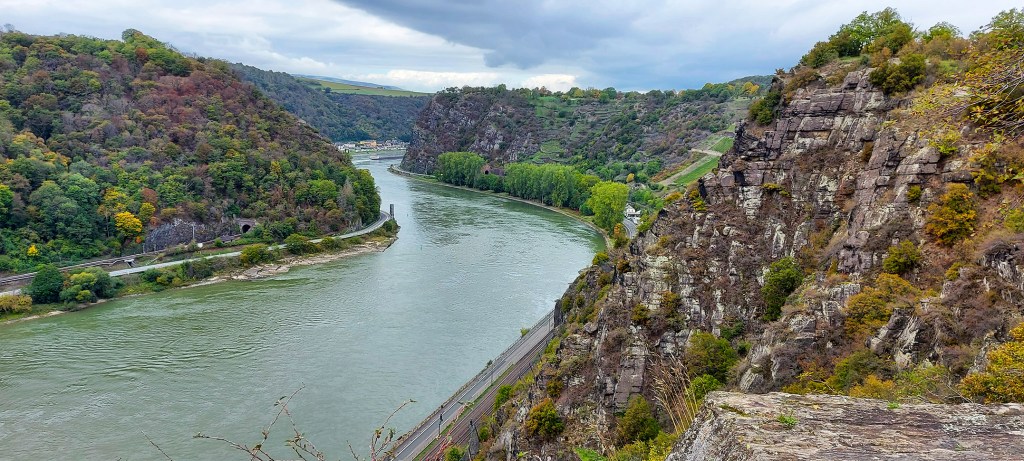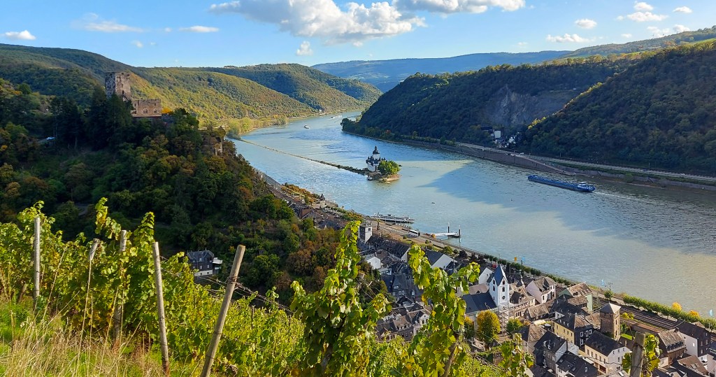 Eigentlich nur eine „Wiederholungswanderung“ auf der „Königsetappe“ des Rheinsteigs. Doch die Begeisterung bleibt. Eine schöne, teilweise aufgrund der Ausblicke auch spektakuläre Runde zwischen St. Goarshausen und Kaub mit der Loreley, einem tiefen Tal, dem Klettern vorbei an einem Heiligen und schließlich dem Ziel an einer berühmten Rheinquerung.