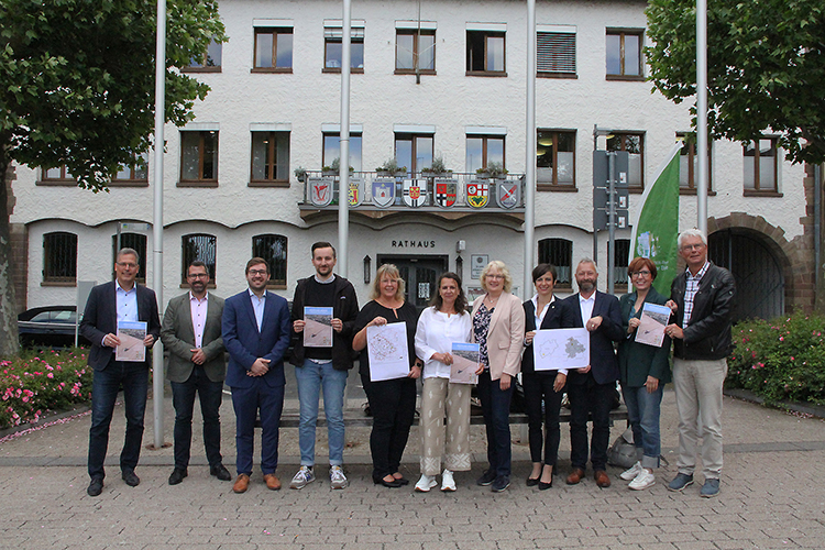 Eines der größten Investitionsprojekte der Stadt: Der Bau des neuen Schulcampus mit Erweiterungen und Neubauten am Standort des Franken Gymnasiums (oben); Zülpichs Bürgermeister Ulf Hürtgen (links), seine Amtskollegen aus anderen Kommunen und Verantwortliche der LEADER-Region Zülpich freuten sich im Mai des vergangenen Jahres vor dem Rathaus der Stadt über die Förderzusage für die kommenden vier Jahre; „En Zöllechs ahle Muure, do ess höck widder jett loss…“ So beginnt das bekannteste Zülpicher Karnevalslied. Das jecke Treiben und Feiern spielt in der Stadt mit vier Karnevalsvereinen eine große Rolle. Hier das Tanzpaar der Prinzengarde aus der Session 2019: Mariechen Leonie Schwan und Tanzoffizier Leo Schöngen.