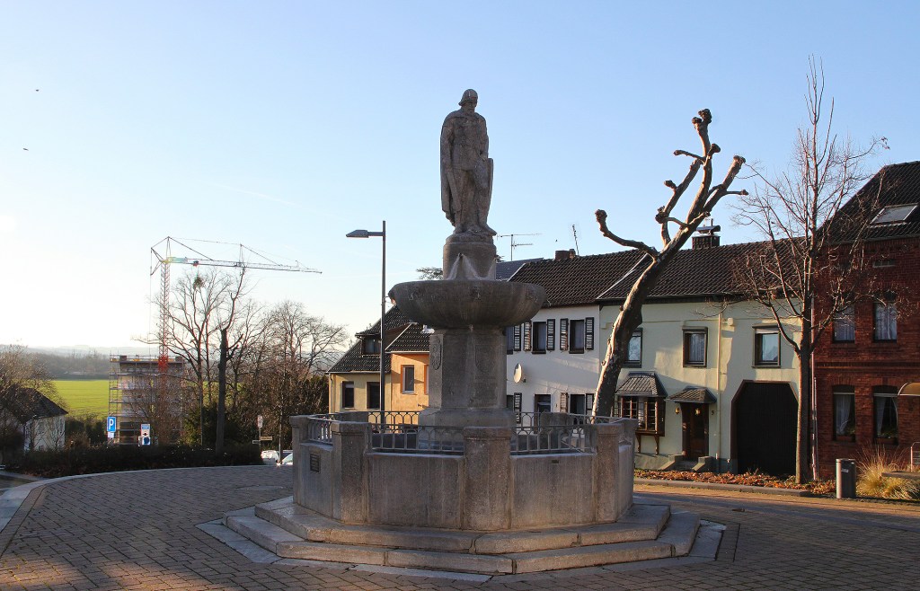 Auch der Markt, wie der Marktplatz hier heißt, wurde saniert. Hier steht der Chlodwigbrunnen, der aber nur bei den Zülpichern so genannnt wird, weil er an Chlodwig, den Frankenkönig erinnere und dessen Sieg gegen die Alemannen 496 in der Nähe des Städtchens. Chlodwig ließ sich danach taufen, begründete ein Großreich, wurde zu einer Art Ur-König Frankreichs, weshalb von Napoleon 1811 der Stadt zwei Gedenktafeln aus schwarzem Marmor überreicht wurden, die heute im Zugang zur Anno-Kapelle der Pfarrkirche an der Wand zu sehen sind.