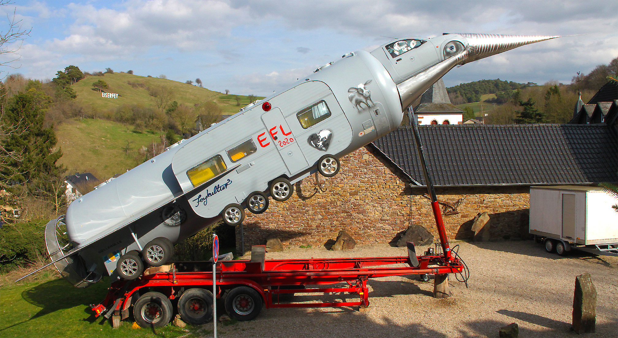 Der Künstler Peter Ratz aus Eiserfey erschafft aus Edelstahlblech eine ganze Welt – und nebenbei lässt er Klimasünder auf einer „Galeere“ schuften.