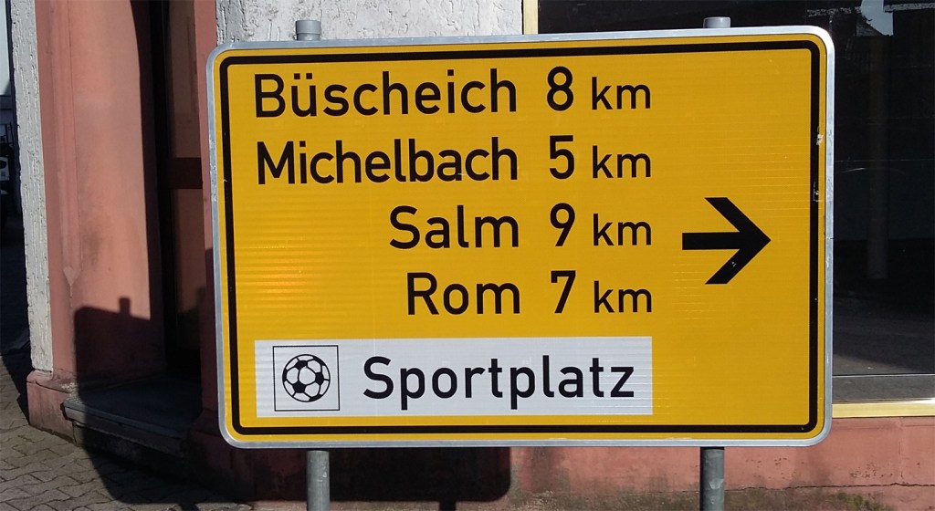Heidi Back (Rom 8) ist „Römerin“ und das seit 50 Jahren. „Wir hatten gerade Goldene Hochzeit!“ freut sie sich, und ist sich sicher: „Von den Römern war noch keiner in Rom.“ Denn Rom (Eifel) hat nicht 2,8 Millionen Einwohner, sondern 14. Dazu aber überproportionale 20 Pferde und ein gutes Dutzend Katzen. Die 14 Mitrömer und Mitrömerinnen zählt Heidi schnell aus dem Kopf auf. Und das Angebot einer Städtepartnerschaft von denen unweit des Salmbaches an die am Tiber sei bislang auch nicht in Betracht gezogen worden. Aber der Fußball – Völker verbindend! Sagen wir es rund heraus: Der Altersdurchschnitt der Römer oberhalb von Birresborn liegt bei Mitte 40, eine „Erste“ kriegt man mittelfristig leider überhaupt nicht zusammen, so war es wohl schon immer.