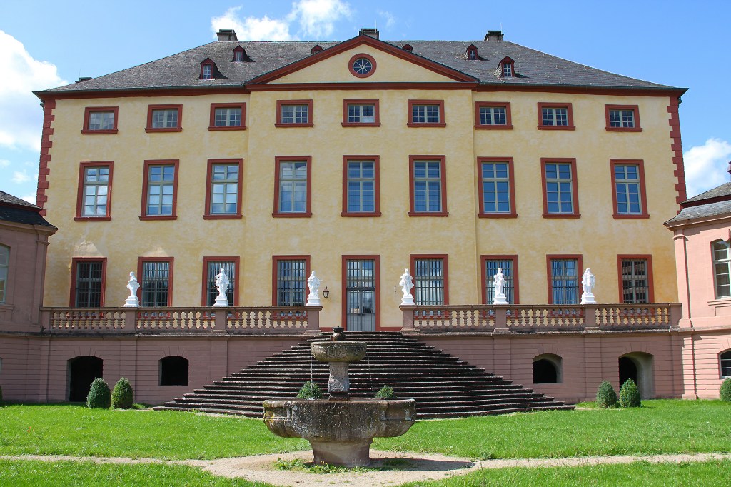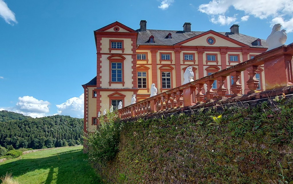 Vor allen Dingen aber fällt der Blick jetzt sofort auf die prachtvolle Barockarchitektur des „Neuen Hauses“, von 1708 bis 1715 vom italienischen Baumeister Matteo Alberti im Auftrag des neuen Schlossherren Johann Werner von Veyder erbaut. Die fast schon klassizistisch reduzierte Kylltalseite des Gebäudes macht klar, was Sinn der Baumaßnahme war: Von Veyder, kurz zuvor zum Weihbischof im Erzbistum Köln gewählt, brauchte eine ihn nobilitierende standesgemäße „Adresse“.