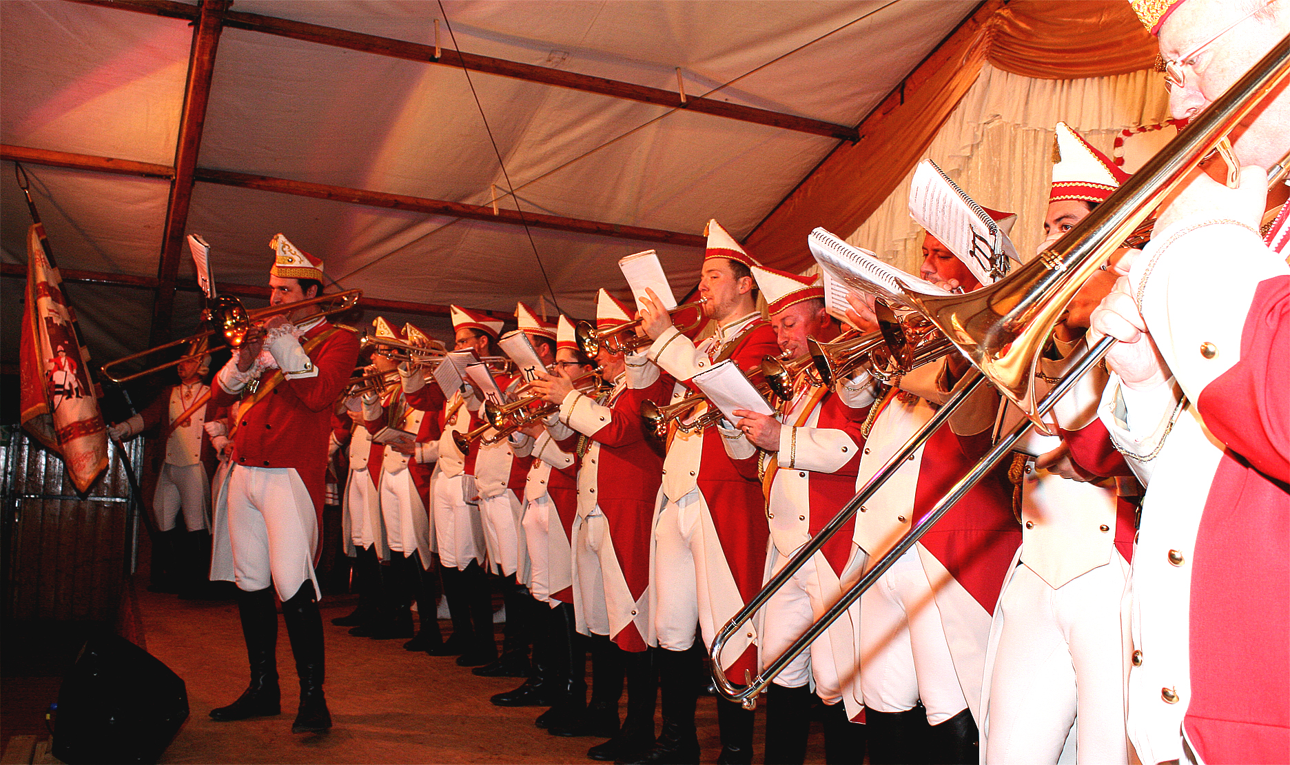 Karneval überall in der Eifel: Auch die Prinzengarde Zülpich, älteste von drei Garden in der Römerstadt und derzeit mit 520 Mitgliedern die Größte, fährt an den Wochenenden von Auftritt zu Auftritt durch die Eifeldörfer. Eifelschreiber ist einen Abend lang mitgefahren.