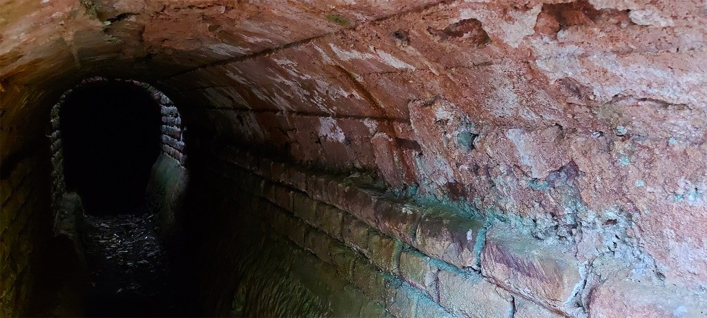 Ab hier ist auch die Bauweise der U-förmigen Kanalrinne über die größte Strecke in einem Regelquerschnitt ausgeführt: 1,35 Meter hoch, 0,70 Meter breit. Damit so dimensioniert, dass über Revisionsschächte im Bückgang Kontrollgänge möglich waren.