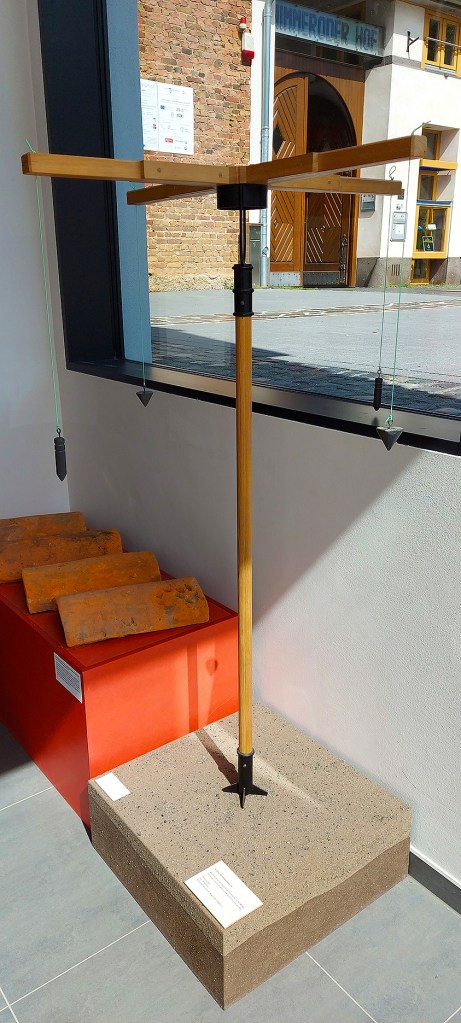 Die Groma kam zum Einsatz, wenn es um die Errichtung von Bauwerken wie Brücken ging, deren Rechtwinkeligkeit so errechnet wurde: Ein drehbares Winkelkreuz mit Bleiloten über einem gekröpften Stativ erfüllte den Zweck.