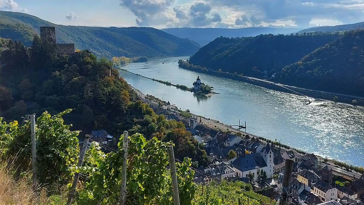 Rheinsteig: Blick auf die Pfalz bei Kaub