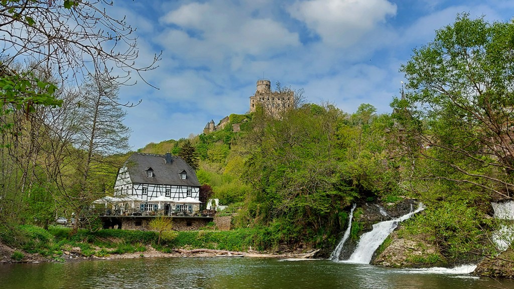 2015 war der „Pyrmonter Felsensteig“ Deutschlands „Wanderweg des Jahres“. Von der Burg Pyrmont geht es hinab ins idyllische Elzbachtal und zur Pyrmonter Mühle unterhalb der Burg an den kräftig sprudelnden Wasserfällen des Eifelbaches. Das ist definitiv eines der Top-Fotomotive der Eifel.