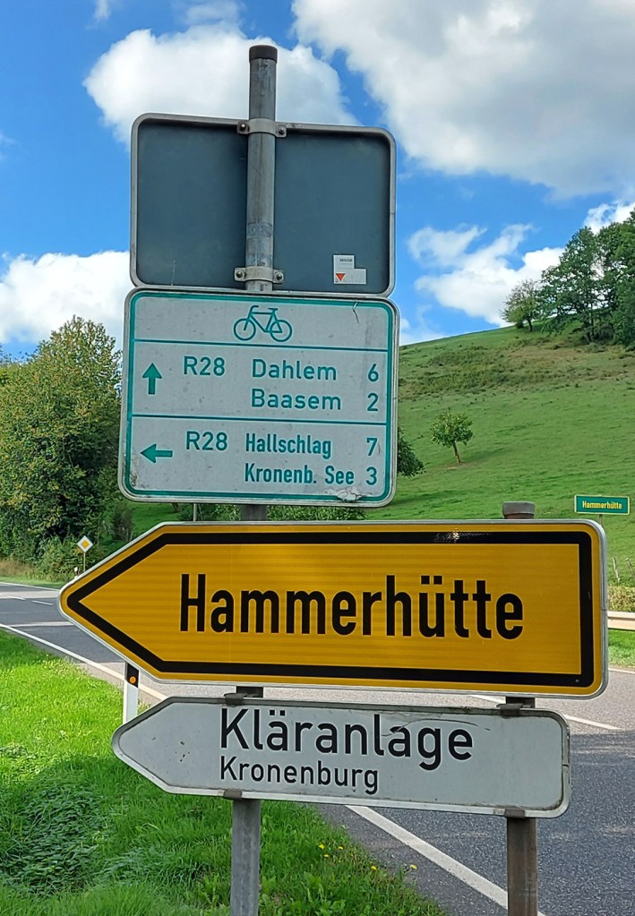 Und jetzt nach Hammerhütte, mehr oder weniger auf der Landesgrenze zwischen Rheinland-Pfalz und Nordrhein-Westfalen, ein Ortsteil von Baasem in der Gemeinde Dahlem im Kreis Euskirchen.