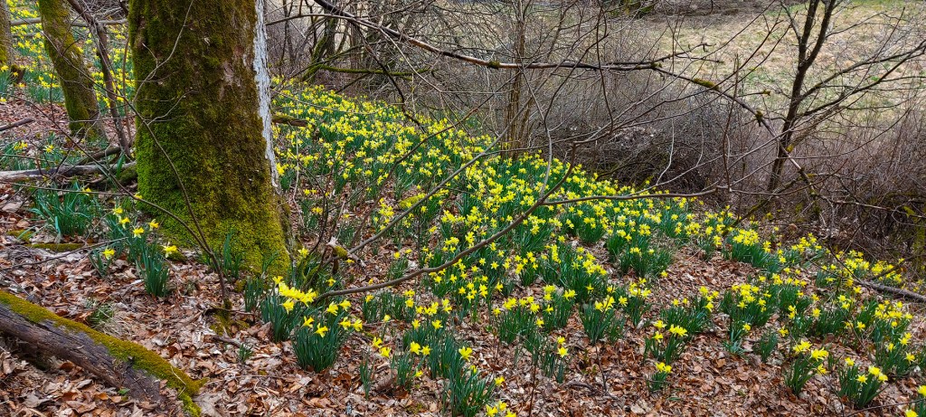 „Burgenbrennen“ bei Lützkampen (Islek), Märzbecher im Bolsldorfer Tälchen (Vulkaneifel) und Wildnarzissen im Fuhrtsbachtal (Monschauer Land). Fotos: Stefan Lieser