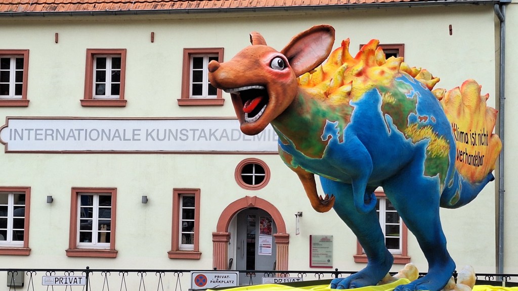 Wer dieses bemerkenswert unangepasste Werk eines Karnevalsmotivwagenbauers sehen will, der kann den Standort der Internationalen Kunstakademie Heimbach nicht verfehlen: Vis-avis des Hauptgebäudes unterhalb der Burg Hengebach im Stadtzentrum steht ein buntes Riesenkänguruh. Es brennt. „Klimaschutz ist nicht verhandelbar“, ist es beschriftet und erinnert an die verheerenden Buschbrände in Australien 2019/20, in denen Millionen Wildtiere starben. (sli)